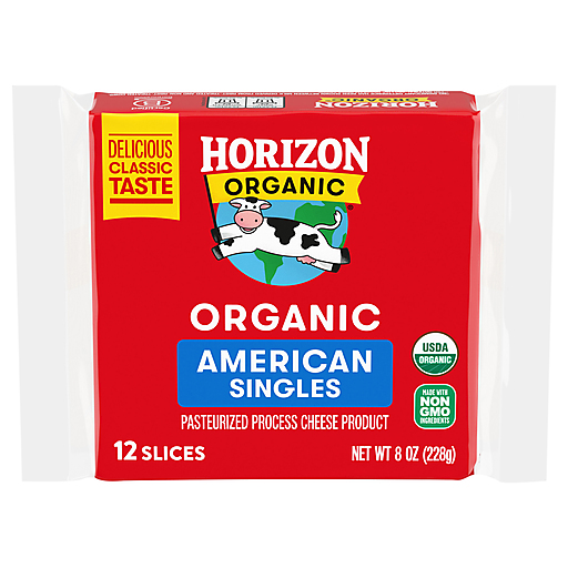 Bring the delicious flavor of organic American cheese to your lunchtime favorites with Horizon Organic American Cheese Slices. Made with real milk and conveniently sliced to help you save time while prepping lunch, these American cheese singles make a tasty addition to sandwiches, wraps and more. And with their classic taste, these sandwich American cheese slices are perfect melted over a burger patty or paired with a cold cut. Always USDA Certified Organic, Horizon American cheese slices come from cows cared for by trusted farmers. Plus, it comes from cows that are fed non-GMO feed and not treated with antibiotics or growth hormones.* Each pack comes with 12 delicious slices of American cheese that are ready to use. It’s organic sliced American cheese that adults and kids can happily enjoy. At Horizon Organic, we believe that organic farming can drive healthier, more sustainable food communities for our world. Pioneering organic for the one horizon we all share. From our farmers to your family, Horizon Organic is nourishing a happy, healthy future.