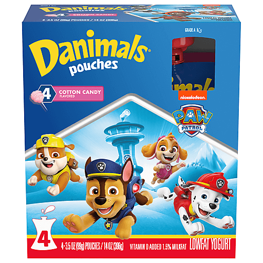 Danimals Cotton Candy Low Fat Yogurt Pouches are on the go snacks for kids that provide 4 grams of protein per serving and are a good source of calcium and vitamin D to help support strong bones. With no high fructose corn syrup and no artificial flavors, Danimals yogurt pouches are easy snacks with a delicious cotton candy flavor that kids will love and that you can feel good about.